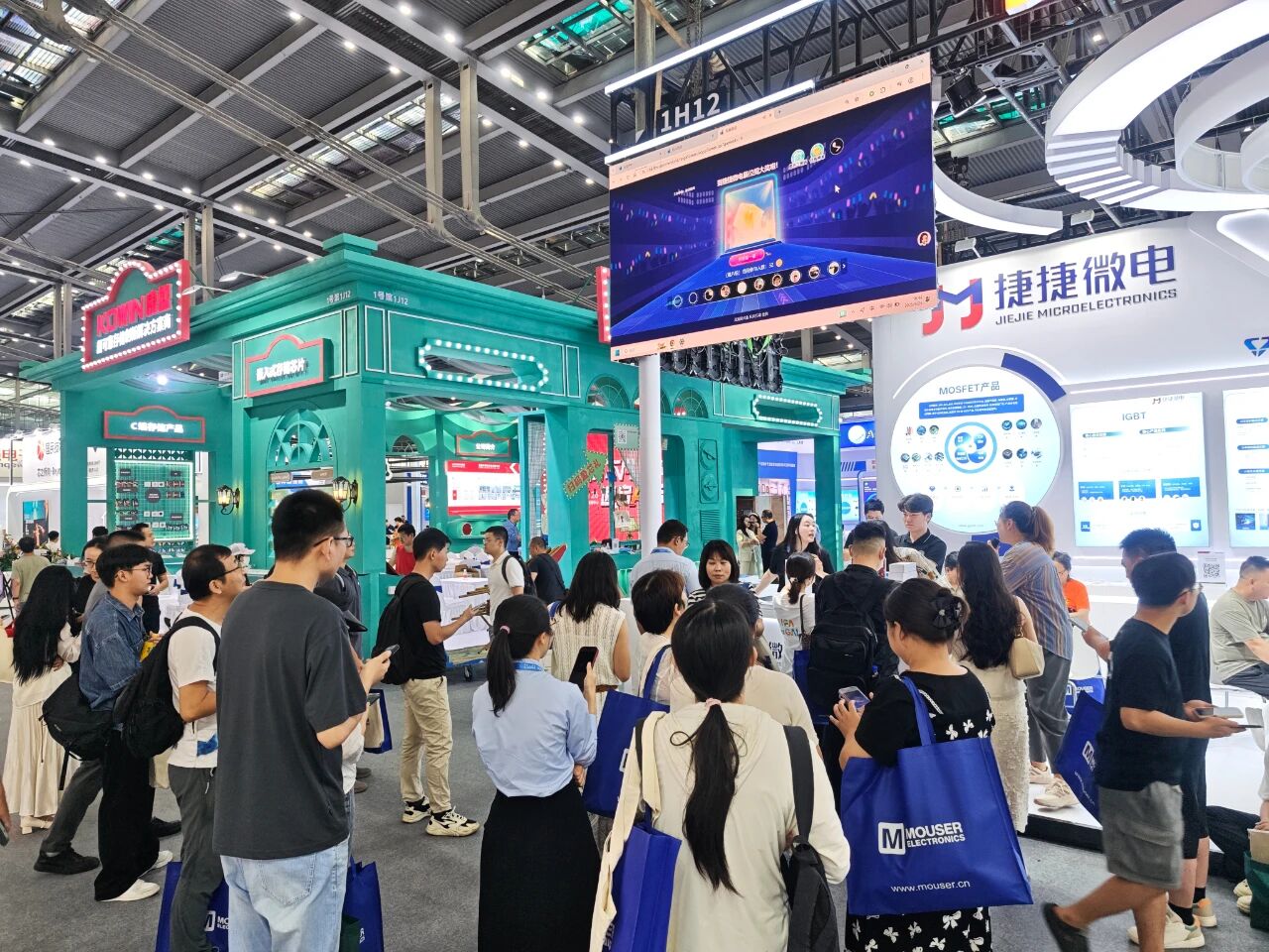 本次展会,PA视讯平台微电的展台设计科技感十足,人流如织。展台核心区域集中展示了公司车规级功率器件、高端MOSFET及IGBT等领域的最新技术成果,凸显了其深厚的技术积淀和前瞻性的市场布局。
