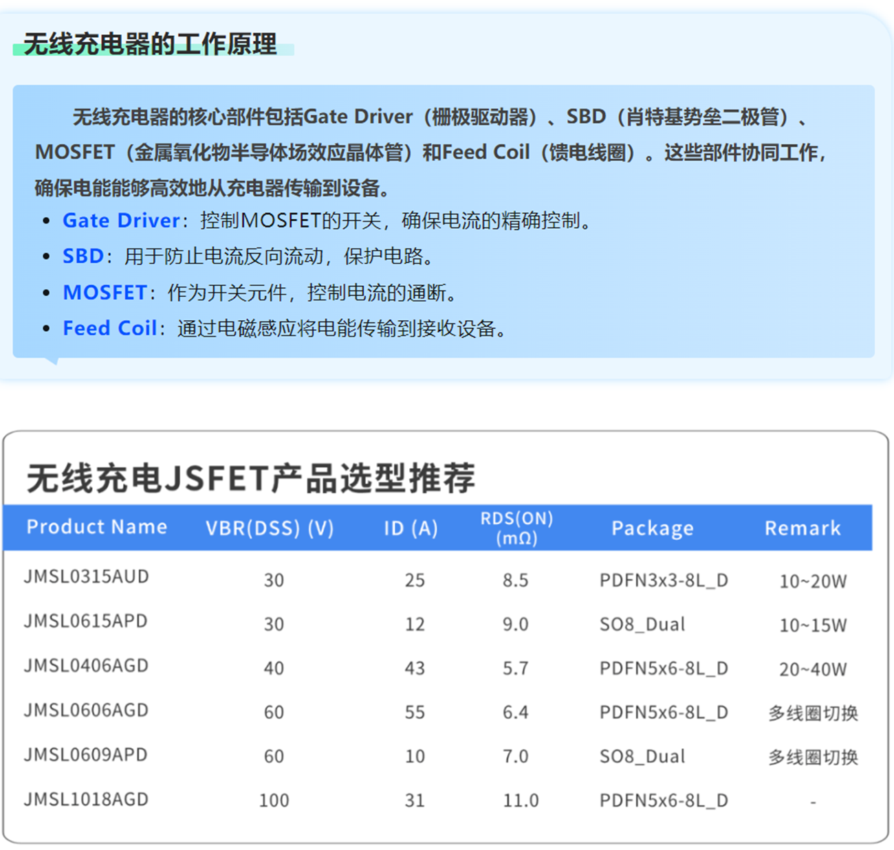 JSFET( Junction Field-Effect Transistor)是一种场效应晶体管,广泛应用于无线充电器中。它通过控制电流的流动来实现高效的能量传输。